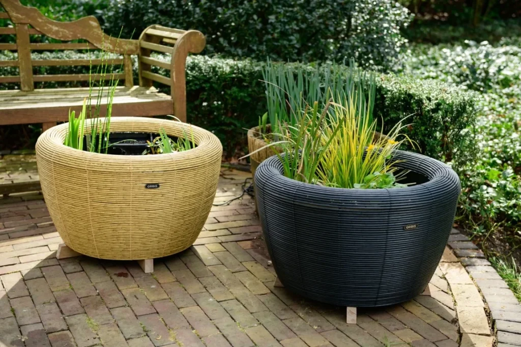 The Orbis mini pond is not only a stylish addition to your garden, terrace or interior – it is also a product with attention to people and the environment. The exterior of the Orbis consists of a sleekly designed frame covered with high-quality wicker, available in two natural colour variants: natural beige and dark anthracite.